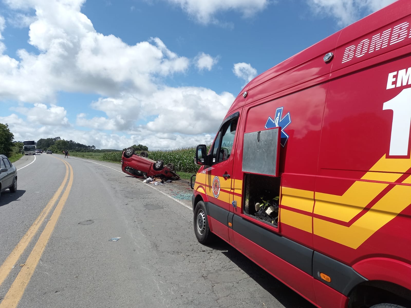 Às 09h45 deste domingo a guarnição do ASU-467 deslocou-se até a localidade de Tingui, BR280 em Mafra, para atender um acidente de transito do tipo capotamento.