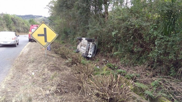 Uma mulher de 24 anos de idade, seguia pela SC 114 no km-01 em Itaiópolis, quando veio a perder o controle do veÃculo e acabou saindo de pista e capotando.
