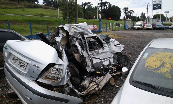 De acordo com a Policia Rodoviária Federal a mulher veio perder o controle do veÃculo Siena, devido à água na pista (aquaplanagem), não conseguindo desviar, batendo de frente com o Caminhão, onde com a violência do impacto, ficou totalmente destruÃdo.