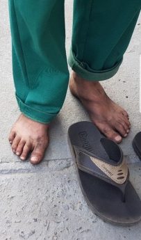 Lá, encontraram um menino de 11 anos, todo sujo, isto é, encoberto por resíduos de carvão, usando uma sandália aberta (tipo havaianas), aparentando exaustão física pelo trabalho e calor. A criança apresentava, ainda, as mãos calejadas e com queimaduras provenientes do trabalho na carvoaria.