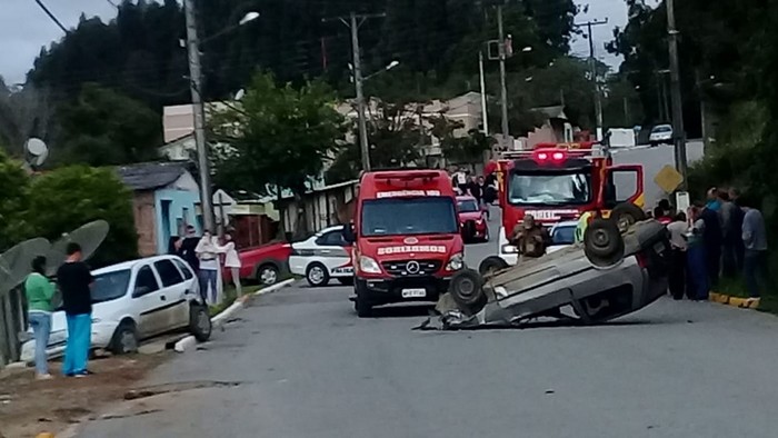 A equipe do Corpo de Bombeiros de Mafra, por volta das 17h30min, deste domingo (04/11), foi acionada para comparecer, a Rua Oscar Amadeu Scholze no bairro da Restinga, para atendimento a um acidente de trânsito, envolvendo dois veÃculos, resultando em capotamento do Fiat/Uno.