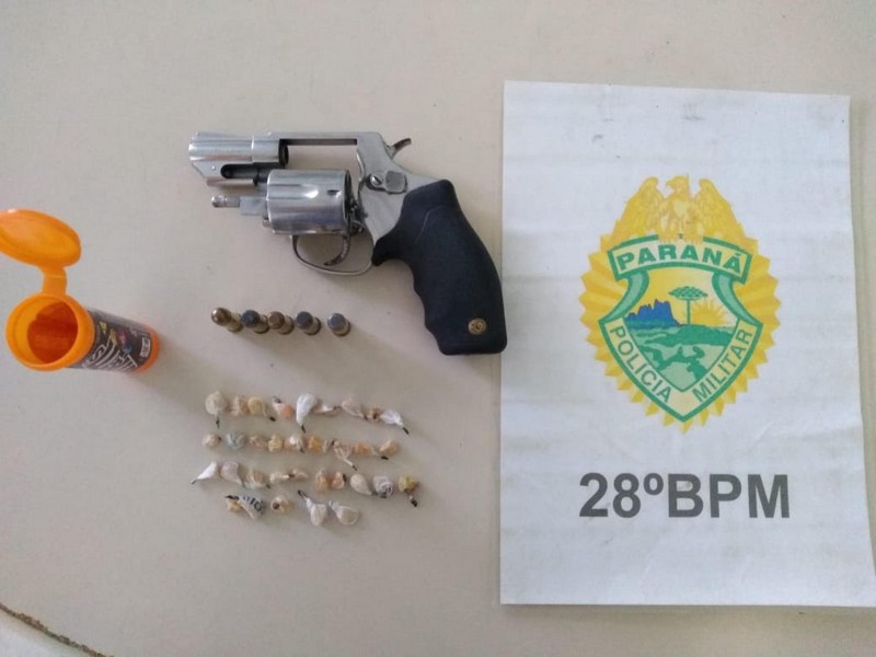 No local o suspeito apresentou dois projéteis que o mesmo recolheu do interior da cozinha de sua residência. Os policiais realizaram buscas na residência e localizaram sobre um caibro do forro um pequeno frasco de plástico, contendo 33 pedras de substância análoga a crack, pesando 08 gramas. Segundo o suspeito “J” o mesmo está ali trabalhando “vendendo drogas”. Diante dos fatos apurados o abordado juntamente com a arma, munições e substância entorpecente, foi encaminhado até a Delegacia da Polícia Civil de Rio Negro, para serem tomadas as providencias cabíveis.