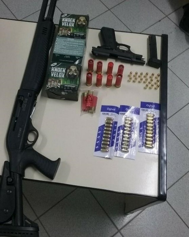 O referido home ao visualizar os policiais imediatamente adentrou a residência e colocou a arma sobre uma mesa. Na residência os policiais apreenderam também uma espingarda calibre 12 e munições. O referido homem foi preso em flagrante e encaminhado para a Delegacia de PolÃcia Civil de Mafra, para serem tomadas as providências cabÃveis.