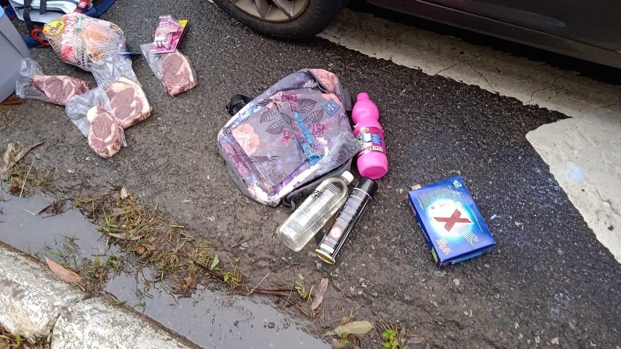 Na terça-feira, dia 11, por volta das 16h50, a PolÃcia Militar de Mafra deslocou até a Rodovia BR 280, após receber informação de um furto de carnes e outros produtos, ocorrido num mercado de Porto União-SC e os autores fugiram num veÃculo Fiat Palio em direção a Mafra.