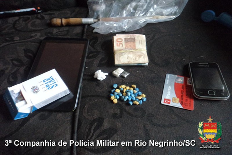 No final da tarde de quarta-feira 13, a PolÃcia Militar de Rio Negrinho com apoio da PolÃcia Militar de São Bento do Sul, tirou de circulação, prendendo em flagrante três pessoas, que faziam o tráfico de drogas, na cidade de Rio Negrinho. Em rápida ação, os Militares identificaram a residência em que os jovens moravam com mais uma mulher, situada no Bairro Industrial Norte.