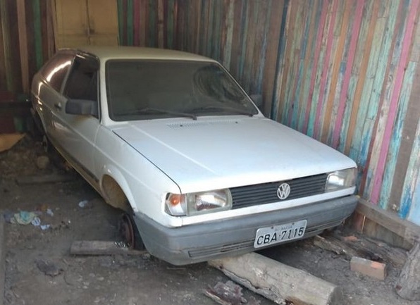 No local foi localizado um veÃculo VW/Gol, que após consulta foi verificado que também possuÃa alerta de furto na cidade de Mafra. O veÃculo estava sem as rodas e bateria, porém o elemento informou aos policiais, onde estavam tais objetos, sendo apreendido pela equipe em outra residência.