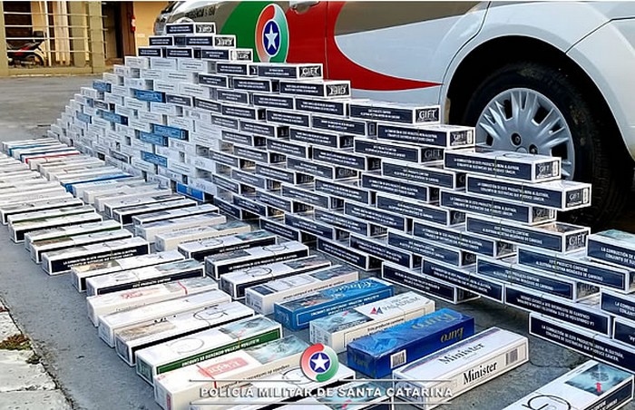 CIGARROS – A PMSC apreendeu a impressionante marca de 85.053 maços de cigarro. Destaque para o trabalho realizado pelo policiamento da 1ª Companhia do 3º Batalhão de PolÃcia Militar (1ªCia/3ºBPM), com sede em Porto União, que confiscou 7.280 pacotes contrabandeados.