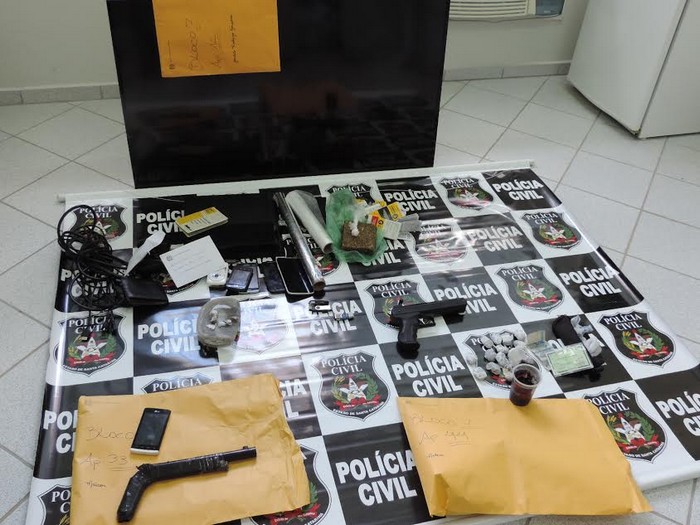 “Além disso, em outro imóvel, foram localizados produtos de furto, dentre os quais, uma TV de Led 52”, subtraída do CREAS do município de Mafra no mês de junho do ano passado.