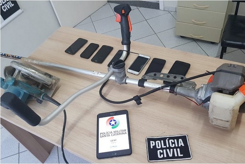 Este elemento preso pela Policia Civil, possuÃa conjunto probatório significativo e no mandado de busca e apreensão nas residências dos integrantes da quadrilha, foram apreendidos celulares e objetos de procedências duvidosas.
