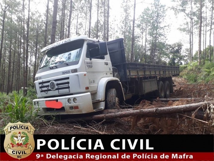 A Policia Civil da DIC de Mafra, dando continuidade à s investigações, localizaram o caminhão furtado, abandonado no interior de Itaiópolis, num local de difÃcil acesso.
