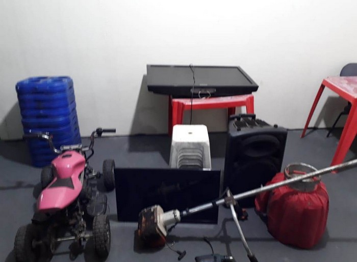 Na residência além dos produtos de origem de furto, os policiais encontraram uma motocicleta Honda/CG Fan na cor azul, sem placas, bem como a numeração do chassi suprimida. A motocicleta placa MCM-1568, a qual também havia sido furtada, já havia sido pintada na cor preta. As motocicletas foram visualizadas nos fundos do terreno.