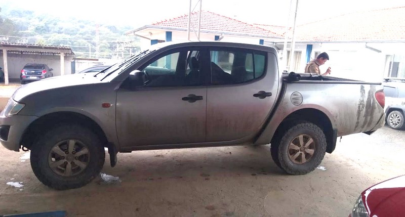 No local os policiais militares localizaram numa residência, uma caminhonete MMC/L200 Triton, com placas de Joinville. Um homem de 68 anos de idade, identificado como proprietário da residência e da caminhonete apresentou um documento (CRLV) com sinais de adulteração (falsificação).