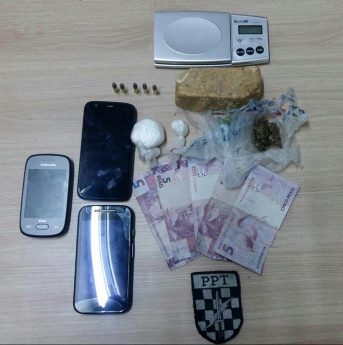 Os entorpecentes e os materiais apreendidos e os dois elementos foram presos em flagrante, por tráfico de drogas e porte ilegal de munições. Eles foram encaminhados até a Delegacia da Policia Civil de Mafra, para serem tomadas as providências cabÃveis.