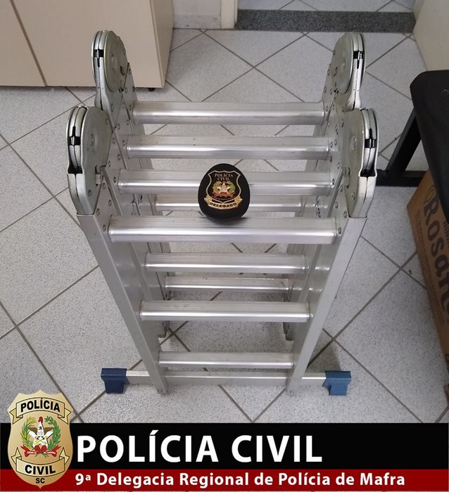 O proprietário que teve esta escada roubada, pode se dirigir ao Setor de Investigação Criminal da Delegacia de Polícia da Comarca de Mafra, para reconhecimento e retirada.