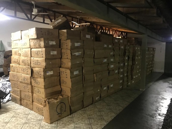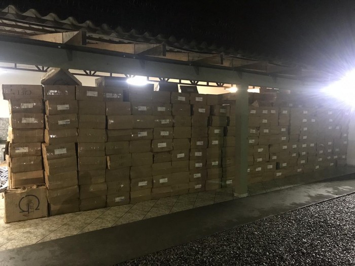 O elemento comentou aos policiais ser filho do proprietário da chácara, onde os policiais visualizaram várias caixas empilhadas no interior do barracão. Os policiais constataram se tratar de caixas de cigarros da marca Gift, contrabandeados do Paraguai.