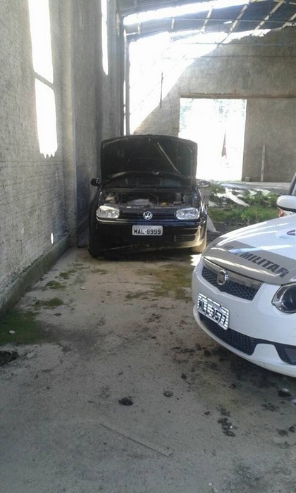 De posse das informações e suspeitando da atitude destes elementos a guarnição se deslocou até o local do fato e avistaram o veículo VW/Golf, placas MAL-8999 de Mafra, abandonado dentro do galpão da antiga serraria Estoltz.