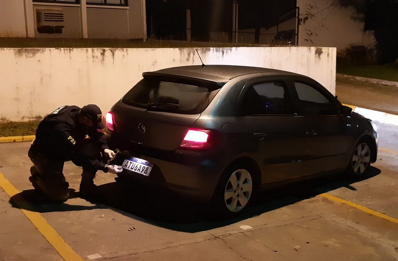 Diante das supostas irregularidades foi realizada uma vistoria mais detalhada no veÃculo e foi constatado que o VW/Gol, era emplacado em São José dos Pinhais e havia sido furtado naquela cidade paranaense no dia 29 de maio de 2020 e estava com placas falsas.