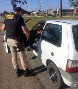 Os policiais visualizaram o veÃculo e deram ordem de parada, mas que não foi atendida pelo motorista. A viatura da PRF passou a acompanhar o Fiat/Uno, onde somente após três quilômetros, atendeu a ordem de parada dos policiais.
