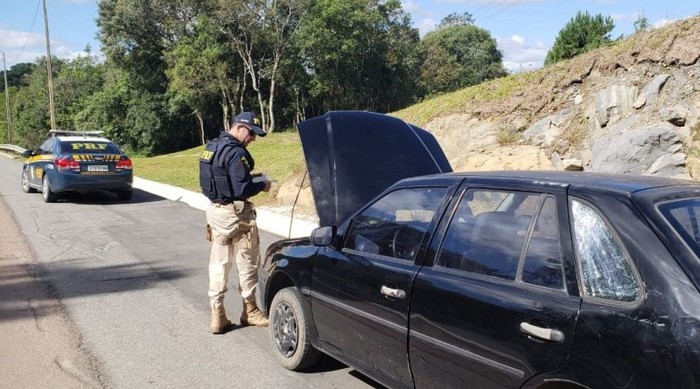 A Policia Rodoviária Federal de Mafra, tiraram de circulação, um veÃculo VW/Gol, ano 2005, estava com licenciamento vencido, desde o ano de 2007, ou seja, 12 anos transitando irregular.