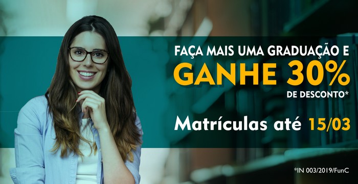 Para matrÃculas novas em Cursos de Graduação na modalidade presencial, poderá ser concedido bônus para Portador de Diploma de Curso Superior, na proporção de 30% de desconto nas mensalidades de 2019.