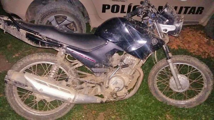 A outra motocicleta uma Honda/NXR 150 Bross Mix KS de cor preta, placa MGV-3287 de Mafra. Com registro de furto no dia 07 de março de 2018.