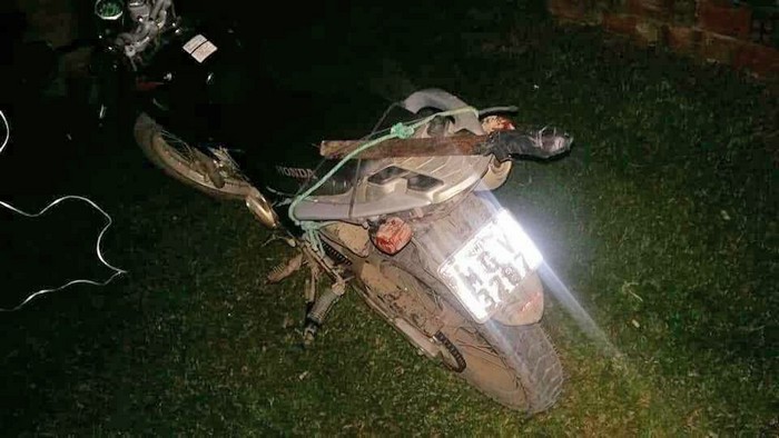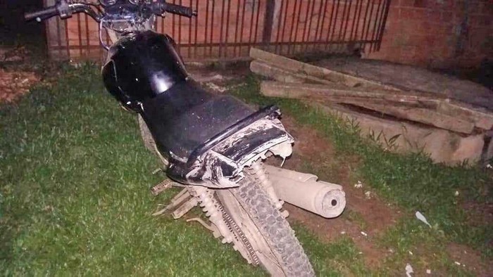 A outra motocicleta uma Honda/NXR 150 Bross Mix KS de cor preta, placa MGV-3287 de Mafra. Com registro de furto no dia 07 de março de 2018.