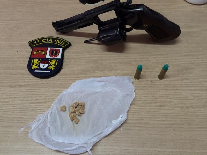 O elemento tentou se evadir da policia, não acatando a ordem e a abordagem, sendo necessário o uso moderado de força, bem como das algemas. Ao ser indagado sobre a arma de fogo, o mesmo relatou que tinha uma arma de fogo em baixo do guarda roupas do seu quarto.