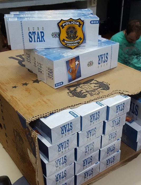 No inicio da noite da última sexta-feira, por volta das 19 horas, a Policia Rodoviária Federal na BR-116, abordaram os veÃculos, VW/Kombi e um Fiat/Uno e detiveram três elementos que transportavam ilegalmente 1.600 maços de cigarros contrabandeados do Paraguai.