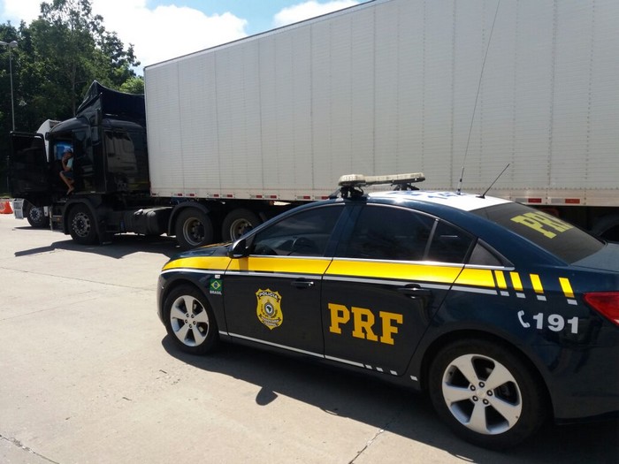 O caminha Scania foi recolhida ao pátio conveniado com a PRF e somente será liberada após a quitação dos débitos vencidos, troca das luzes traseiras, regularização do tacógrafo e pintura do caminhão na cor branca ou mudança da cor constante no registro.