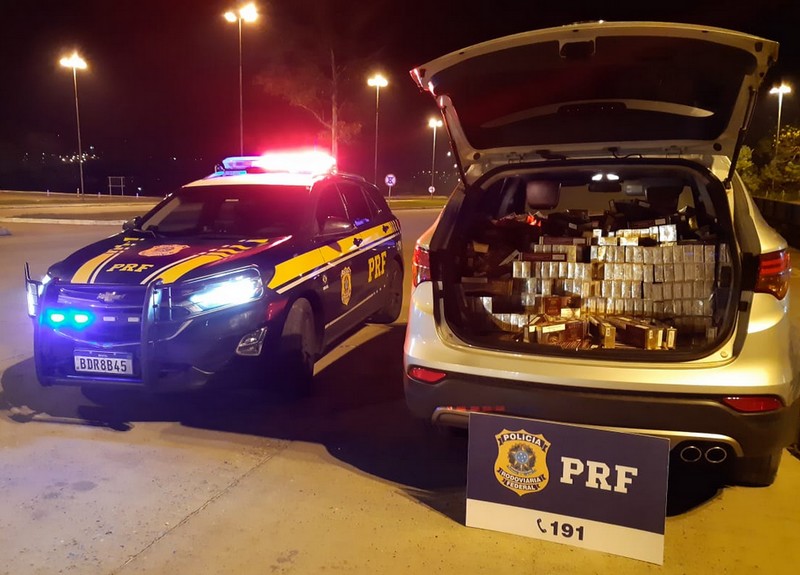 Em revista veicular os policiais rodoviários encontraram oito mil maços de cigarros contrabandeados, oriundos do Paraguai e ainda foram apreendidos três celulares, um rádio de comunicação, provavelmente para o batedor de carga, 10 gramas de maconha e ainda quatro mil reais em dinheiro.