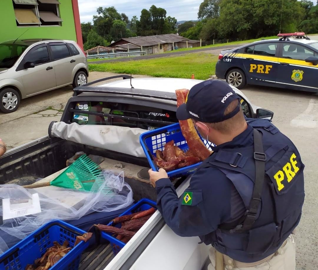 Policiais rodoviários federais flagraram na manhã desta quarta-feira, na BR 116 em Mafra, 22 quilos de alimentos derivados de carne suína transportados sem condições sanitárias.