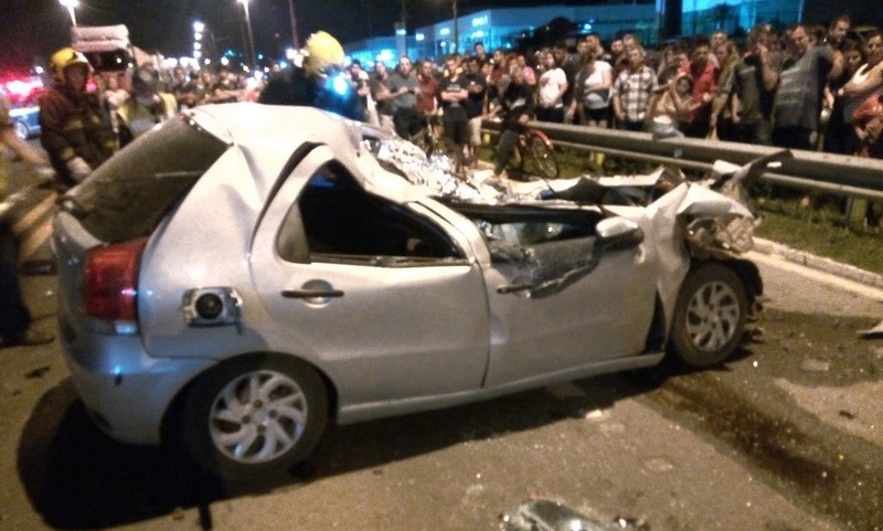O terceiro veículo envolvido, um VW Gol placas de Itaiópolis, trafegava sentido sul, sendo atingido na traseira. Tinha como condutor um masculino de 24 anos, tendo como passageira uma feminina gestante de 22 anos. Ambos foram retirados pela equipe da Autopista; encontravam-se em maca rígida, conscientes, orientados, apresentando escoriações, sendo conduzidos ao Pronto Atendimento do Hospital São Vicente de Paulo. Foi realizado lavação da pista e deixamos a cena aos cuidados da Polícia Rodoviária Federal e Autopista.