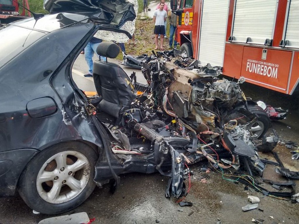 Com a força do impacto o veÃculo ficou totalmente destruÃdo, aonde o motorista Antônio Jair Ferreira da Silva (49 anos) e sua esposa Raquel de Medeiros (47 anos), moradores no bairro Faxinal, morreram na hora.