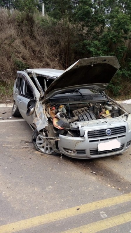 Chegando ao local a equipe dos bombeiros depararam, com um veículo Fiat/Pálio, placas de Rio Negrinho, aonde veio a capotar após ter saído da pista e parou sobre a pista de rolamento.