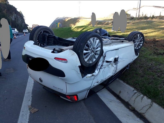 O motorista de 34 anos do veÃculo Fiat/Punto, placas de Mafra, veio a colidir com um caminhão Scania R 440, placas de Araucária e veio a capotar as margens da rodovia.