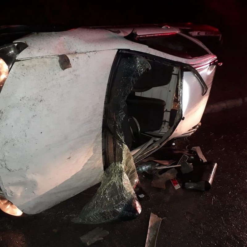 O condutor do veÃculo Fiat/Strada de propriedade de uma empresa de gás, acabou perdendo o controle do automóvel e saiu da pista e capotou.