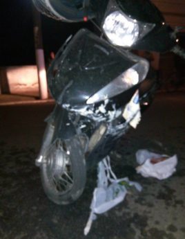 O condutor de 40 anos da motocicleta Honda Biz 125, placa de Mafra, encontrava caído sobre a via, estando sem o capacete, apresentava ferimento na região da boca e face direita.