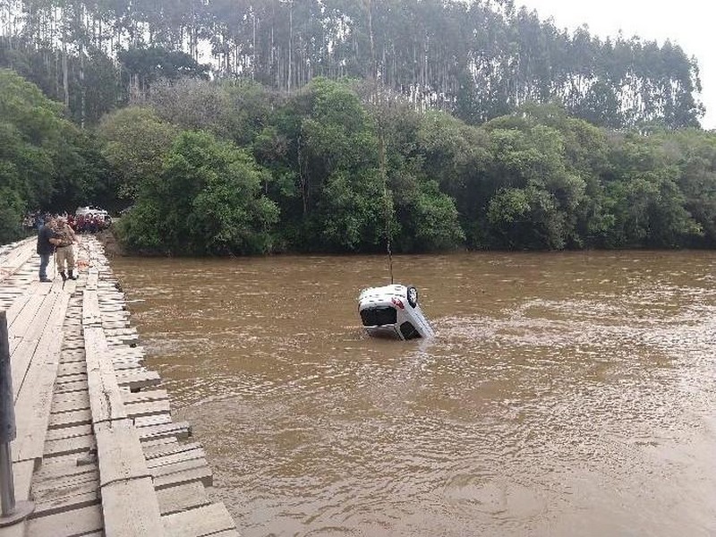 Na manhã deste domingo (20/10), por volta das 07h30min a Policia Militar de Mafra se deslocou até a localidade de Rio Preto do Sul, divisa com o estado do Paraná, onde um homem ao efetuar a travessia na ponte, visualizou um veículo submerso no rio Negro.