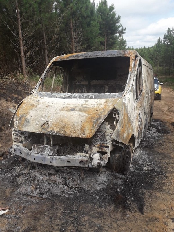 Na manhã da última sexta-feira (10/10), por volta das 08h30min a Policia Militar de Rio Negro, recebeu uma denúncia de um veÃculo Renault/Master, branco, placas AZB-836, incendiado em meio um reflorestamento de pinus na localidade de Campina Bonita.