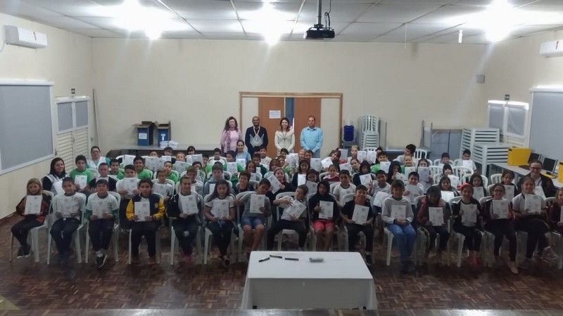 Ao final da palestra, cada aluno recebeu um kit com caderno, lápis, régua, cartilha explicativa e cartilha com atividades diferenciadas. Material que será utilizado em sala de aula para ampliar a aprendizagem.