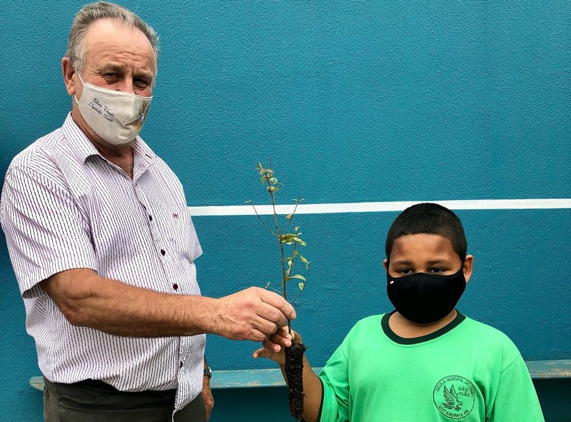 Na terça-feira (21), comemora-se o Dia da Árvore e a Secretaria Municipal de Agricultura e Meio Ambiente juntamente com a Secretaria de Educação, em parceria com o IAT (Instituto da Água e Terra) realizaram a distribuição de 75 mudas de Pitanga e Guarandi para três turmas da Escola Municipal do Campo São João, na localidade do Ribeirão Vermelho.