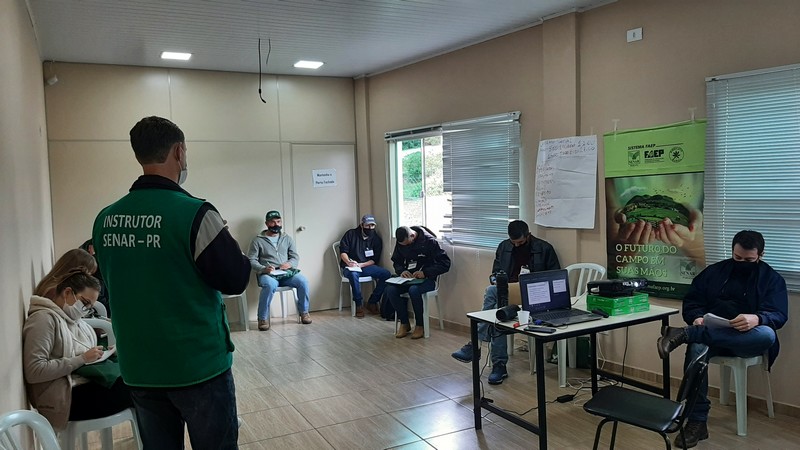 Devido a pandemia, 9 produtores estão realizando o curso até esta sexta-feira (11). O curso é composto por 40h e está sendo realizado no salão da Secretaria de Agricultura e Meio Ambiente.