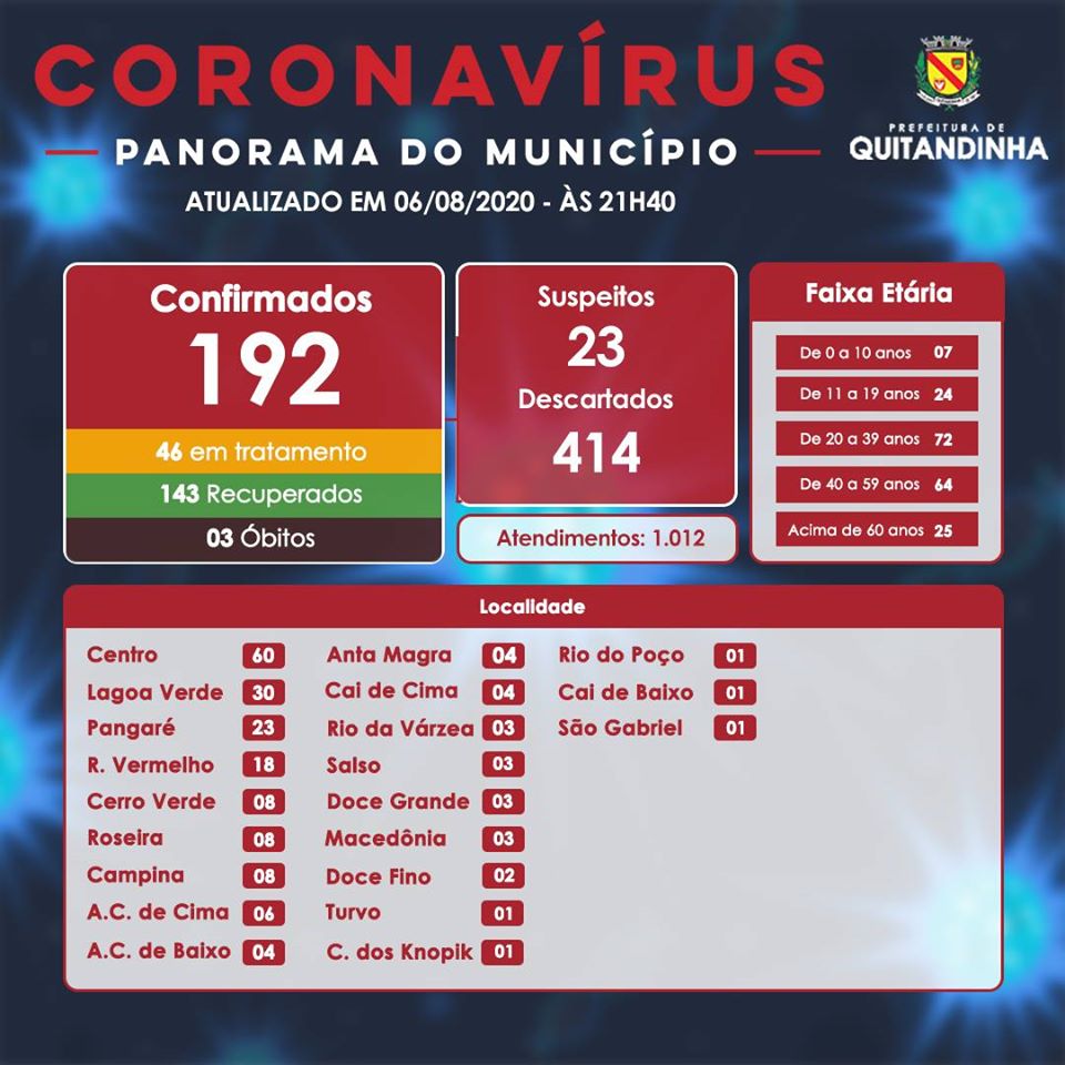 Além do óbito, a Secretaria Estadual e a Secretaria Municipal de Saúde confirmaram mais quatro casos de Covid-19 em Quitandinha. De acordo com informações da Secretaria Municipal de Saúde, os pacientes são: