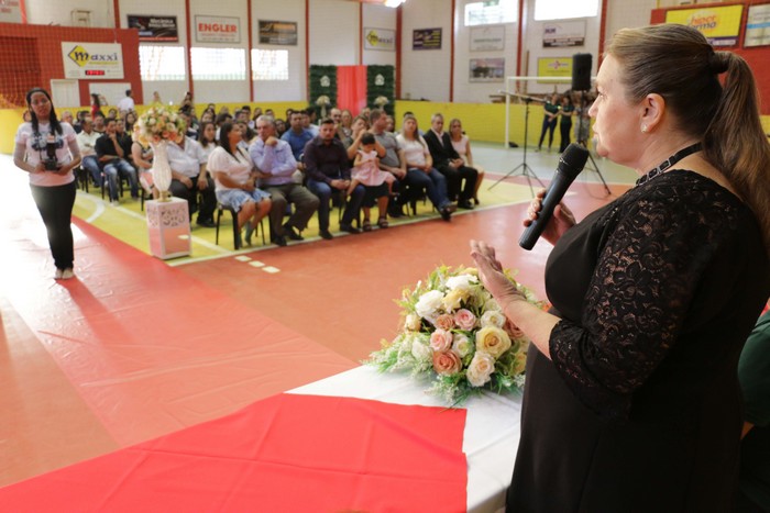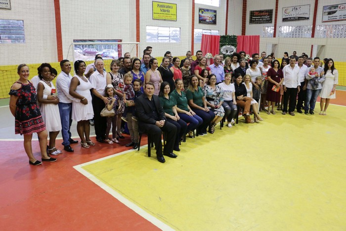 A cerimônia aconteceu no ginásio de esportes, contando com diversas autoridades.