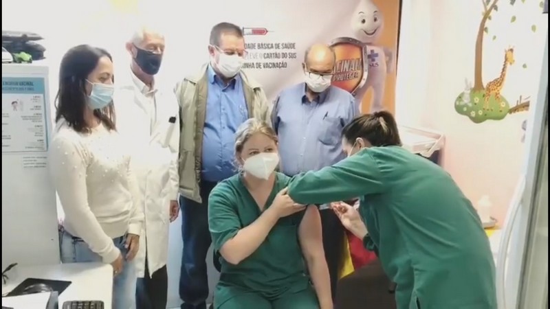 Enfermeira foi a primeira pessoa a ser vacinada em Quitandinha