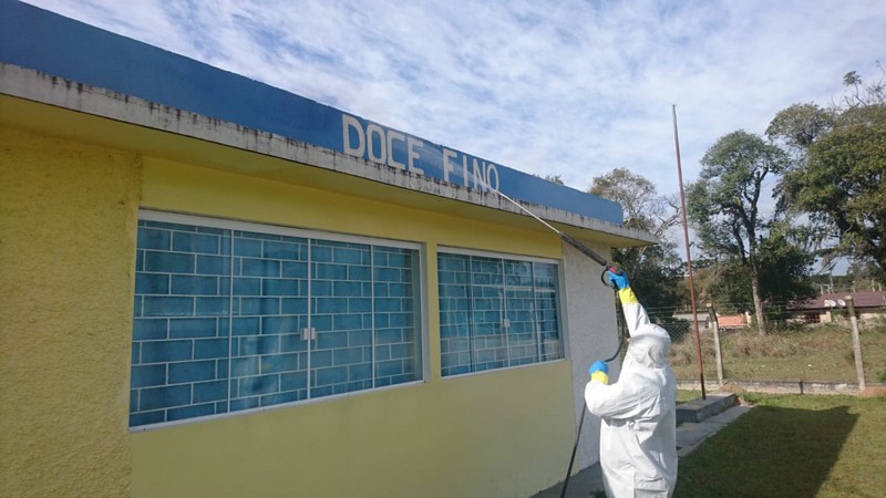 Foram contratadas duas diárias de desinfecção. Nas oportunidades, foram sanitizados a Prefeitura, a Câmara, todas as secretarias que contam com atendimento contínuo ao público, CRAS, CREAS, o Posto Sede, a base do SAMU, a sede da Vigilância Sanitária, além da Central de Veículos, a Rodoviária do município, todas as ambulâncias em serviço e os pontos de ônibus do Centro. Um desses dias foi dedicado à desinfecção de todos os postos de saúde do interior, na Lagoa Verde, Turvo, Água Clara, Pangaré, Doce Fino, Doce Grande e Campina.