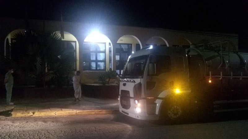 Junto desse reforço, a Prefeitura também deu continuidade na sanitização dos espaços públicos de Quitandinha. Desta vez, com um caminhão pipa maior contendo Combacter 800, foram desinfetados a Prefeitura, a Câmara, todas as secretarias que contam com atendimento contínuo ao público, CRAS, CREAS, o Posto Sede, a base do SAMU, a sede da Vigilância Sanitária, além da Central de Veículos, a Rodoviária do município, todas as ambulâncias em serviço e os pontos de ônibus do Centro.