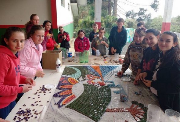 Painel ilustra a cultura ucraniana na fachada da Pré-Escola Anjo da Guarda de Iracema
