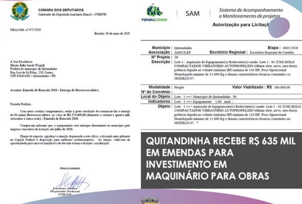 Quitandinha recebe R$ 635 mil em investimento para maquinário de obras