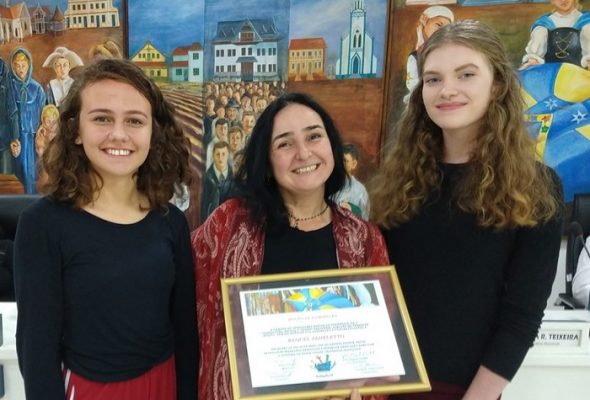 Pintora itaiopolense recebe homenagem dos vereadores mirins